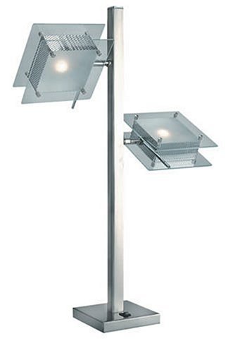 Square, stylish and fully rotatable area lights dominate this lamp. Handles on the lights allow for ease of movement of the lights. Halogen bulbs illuminate this lamp and your area.