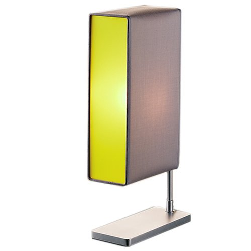 - Modern design table lamp adds artistic complement as well as utility to any décor- Polished chrome pole and base; linen shade in brown surrounds green translucent accent