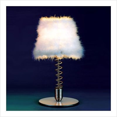 - Winsome table lamp sways back and forth for eye-catching illumination- Metal coiled spring center on round base; feather shade in a choice of colors